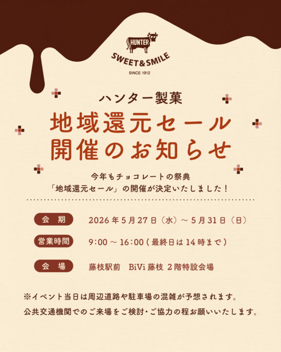 詳しい情報はハンター製菓 地域還元セールInstagramで順次アップいたします。